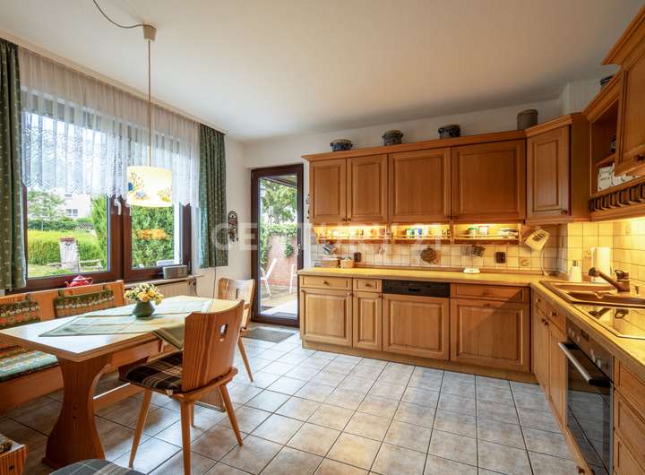 Sie betreten das Haus durch einen großzügigen Dielenbereich, von dem aus alle Zimmer zugänglich sind. Das Herzstück des Hauses, die funktionale Wohnküche, lädt zum gemeinsamen Kochen und zum Verweilen ein, mit Blick in den Garten und Zugang zur Terrasse.