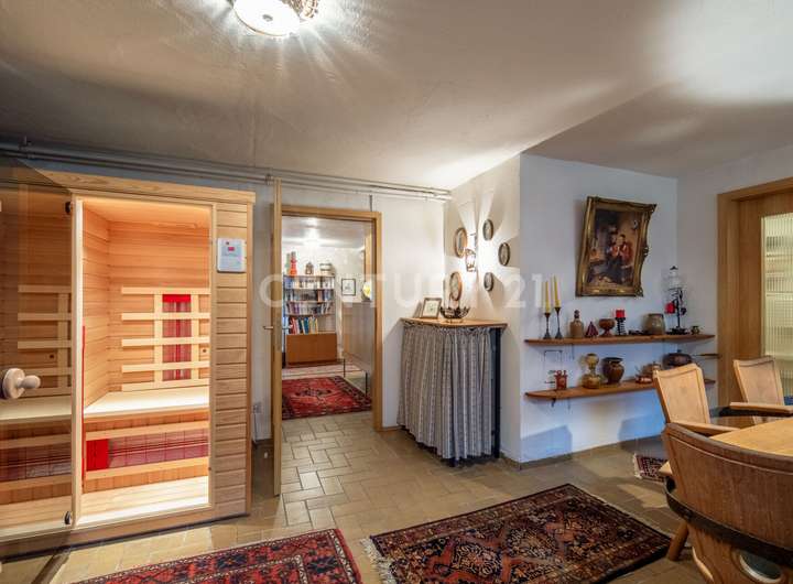 Das Einfamilienhaus ist auch eine ausgezeichnete Wahl für Gartenliebhaber und Wellness-Enthusiasten, denn das Wohlfühlprogramm nebst Außenpool wird durch eine Infrarotsauna abgerundet.