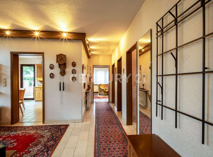 Zum Verkauf steht ein charmantes 5 Zimmer-Einfamilienhaus im Bungalowstil, das auf einer großzügigen Grundstücksfläche von ca.824 m² liegt und sich ideal für Familien oder als Mehrgenerationenhaus eignet, da es Wohnen auf 2 Ebenen verbindet.