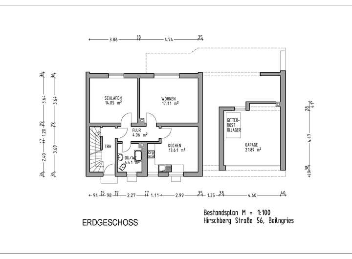 - Deckenhöhen: EG ca. 2,42 m; OG bis ca. 2,48 m; DG ca. 2,35 m, KG ca. 2,00 m;