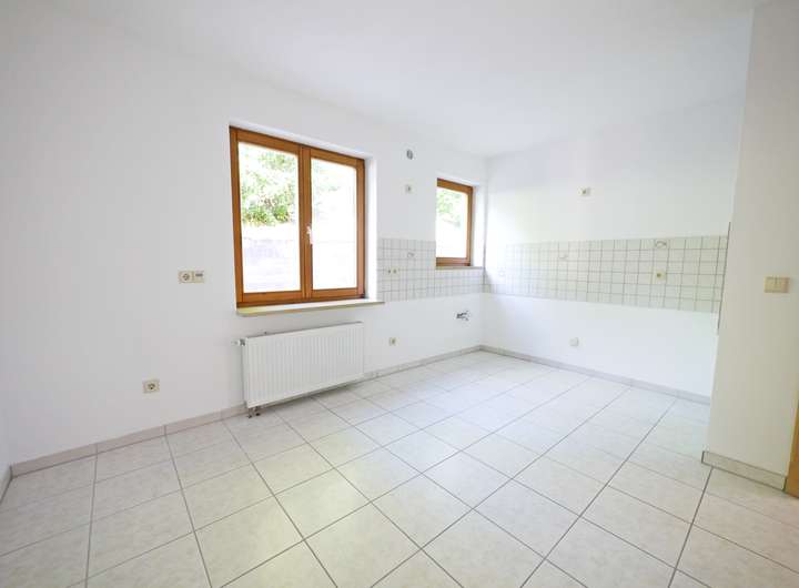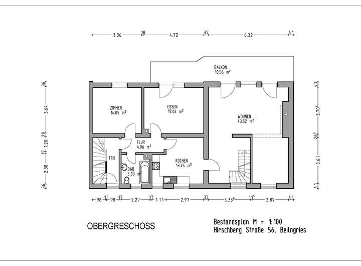 Obergeschoß: Flur, Ess- Wohnzimmer, gr. Balkon, Wohnküche, 2 Kinderzimmer,