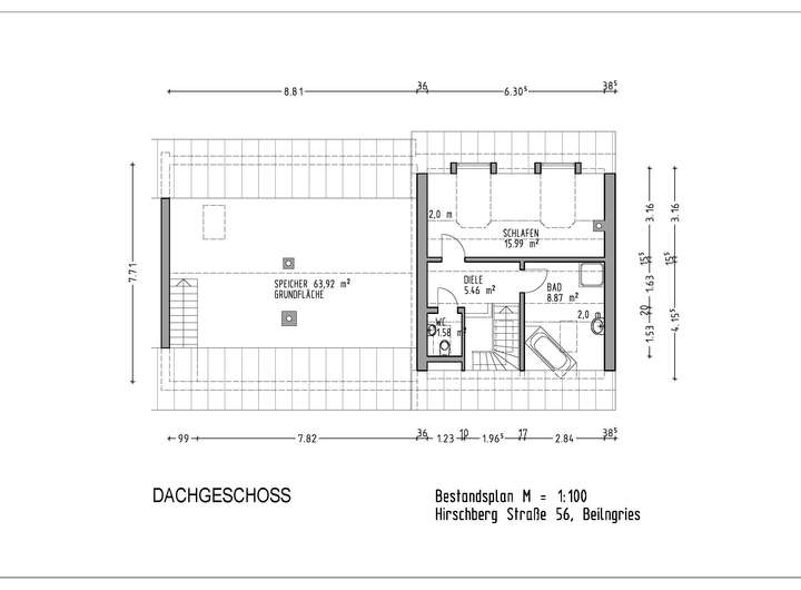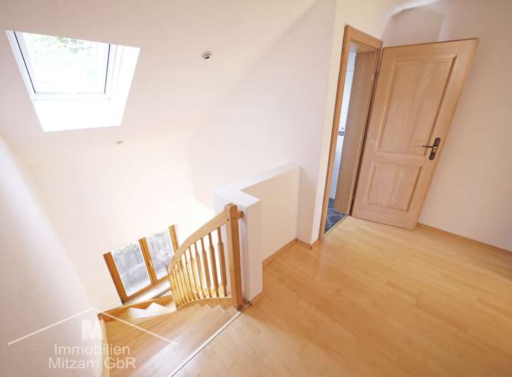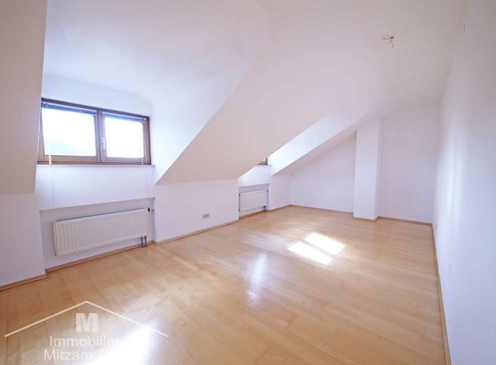 Dachgeschoß: Schlafzimmer, Bad: Wanne, Dusche, Waschbecken, HHK, WC extra. Im Altbau befindet sich ein Dachboden der über das Treppenhaus zu erreichen ist.