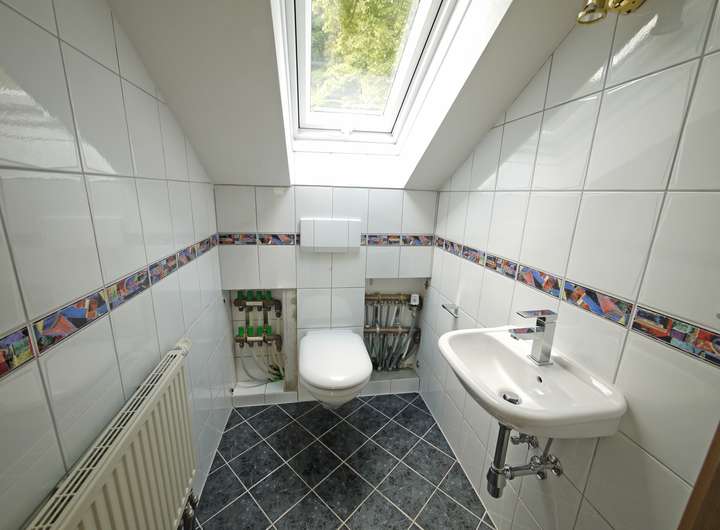 - Flachwandheizkörper und Fußbodenheizung im Bad DG;