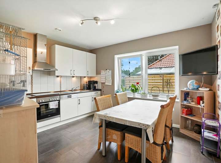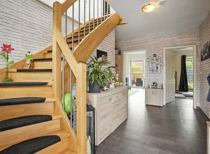 Im Erdgeschoss erwarten Sie ein lichtdurchflutetes Wohnzimmer mit Zugang zur Terrasse, eine Küche mit Sitzmöglichkeit, ein großzügiges Schlafzimmer, ein Badezimmer sowie ein praktischer Hauswirtschaftsraum.