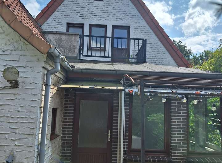 o Es ist mit einem leerstehenden, stark renovierungsbedürftigen Einfamilienhaus bebaut