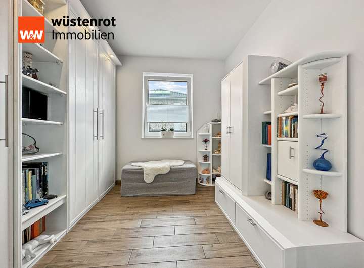 Eines der Schlafzimmer ist mit einem Einbauschrank gestattet, welcher zusätzlichen Stauraum und Organisation bietet.