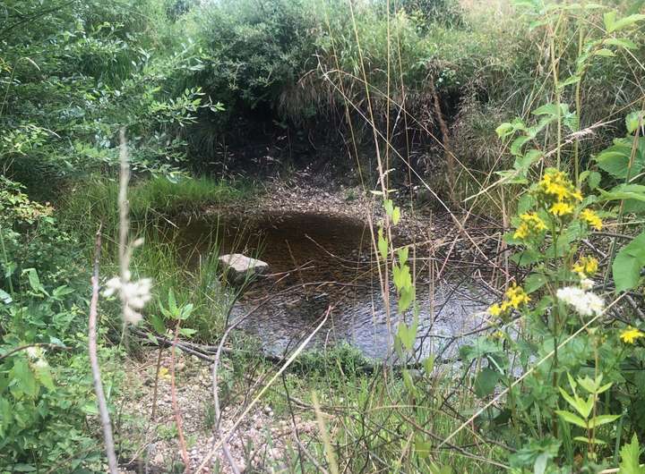 Das ideal geschnittene, perfekt bebaubare, fast quadratische Grundstück hat am hinteren Bereich einen idyllischen Bachlauf.