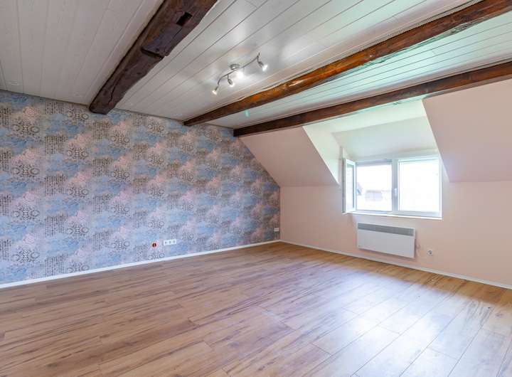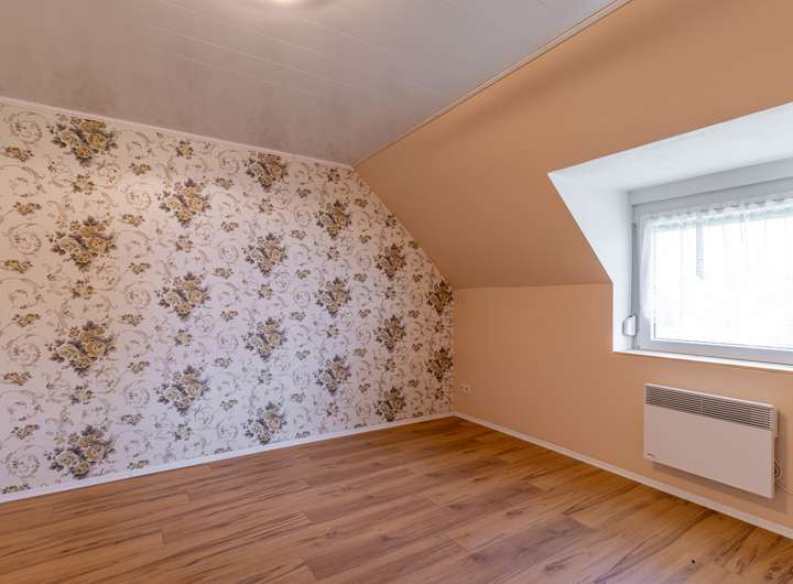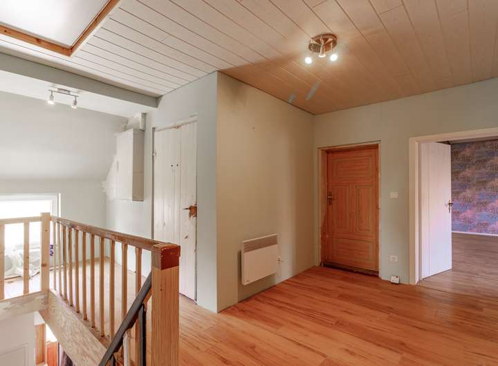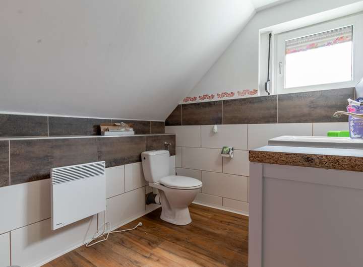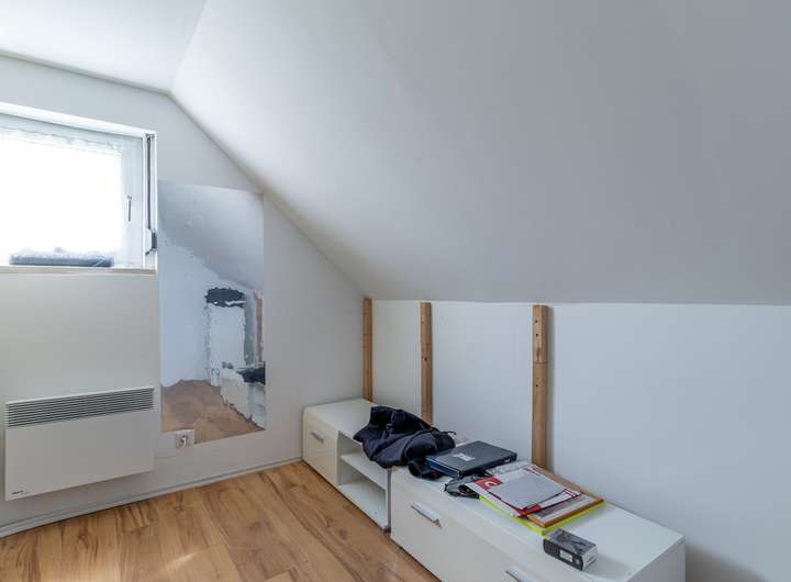 Das Obergeschoss verfügt über ein Schlafzimmer, ein Arbeitszimmer, ein Badezimmer mit Dusche und Fenster, zwei Kinderzimmer und eine Ausbaureserve.