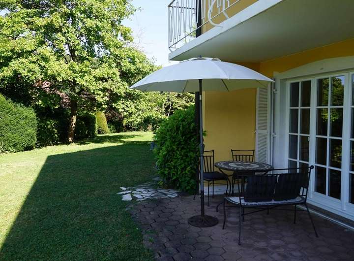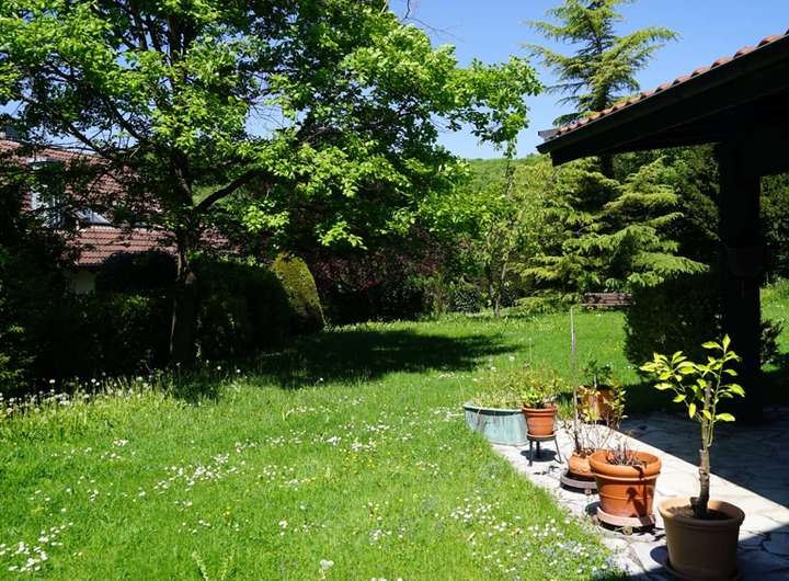 - Weitläufige Gartenfläche und zahlreiche Topfpflanzen