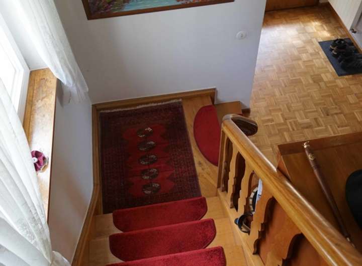 Mit dem PKW kann man die lange eigene Auffahrt zum Wohnhaus befahren bis zu einem an der oberen Grundstücksgrenze liegenden Treppenaufgang. Dort kann der PKW auch geparkt werden.