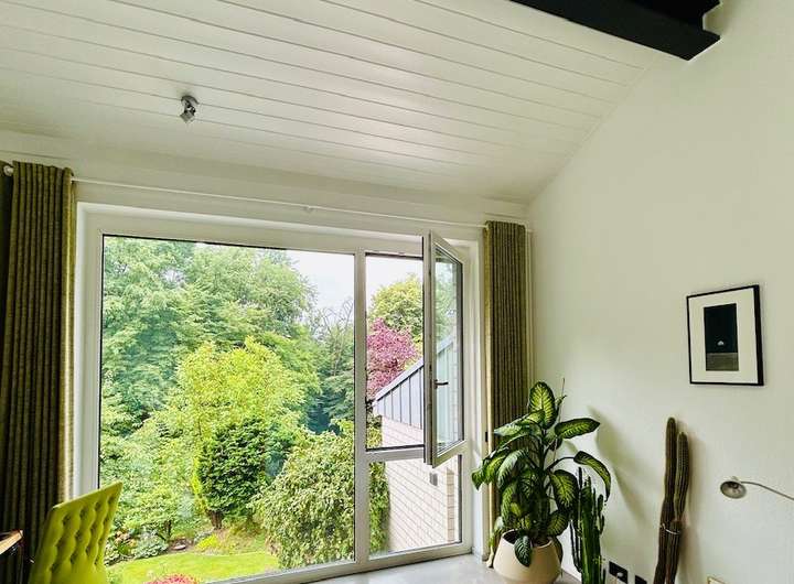 Mit 3 Kinderzimmern/Büros, einem Hauptschlafzimmer mit Terrassenzugang, einem großen Fitnessraum mit Gartenblick und einem potentiellem Sauna-/Atelierbereich mit eigenem Gartenzugang bietet das Haus viel Flexibilität für jede Lebenslage, sowie optional eine ELW.