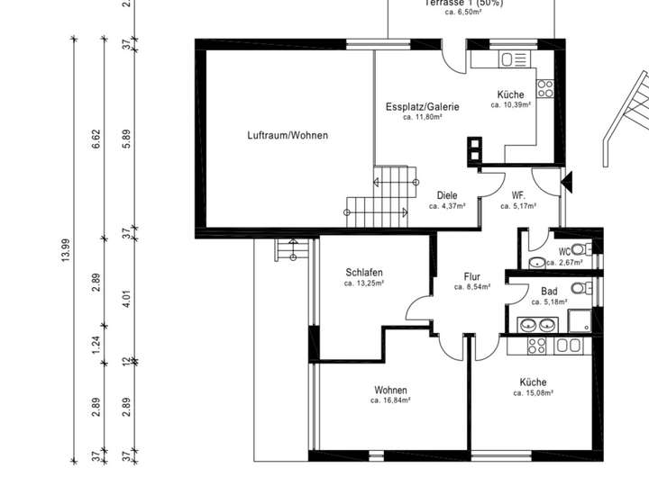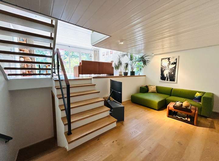Der offene Wohn- und Essbereich mit Galerie und hohen Decken schafft ein einzigartiges Raumgefühl. Große Fensterfronten und drei sonnige Terrassen garantieren ganztägig Licht und Ausblick. Die neuen, hochwertigen Fenster mit dreifacher Isolierverglasung sorgen für eine exzellente Wärmedämmung und tragen zu einem energieeffizienten Wohnklima bei.