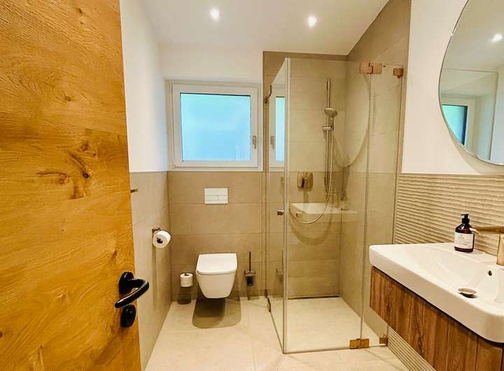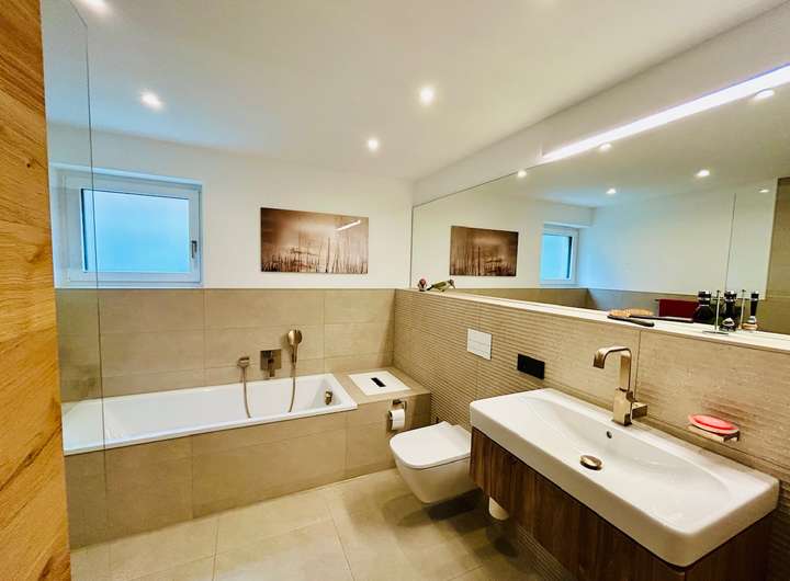• Bäder: Zwei exklusive Bäder – eines mit Dusche & Badewanne, das zweite mit Dusche – ein elegantes Gäste-WC – (erneuert: 2022)