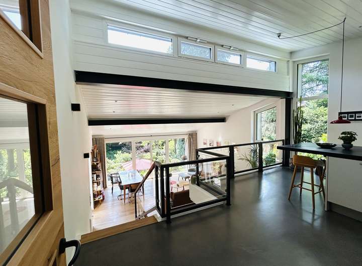 • Wohnbereich: Hohe Decken, Galerie & fließender Übergang zu Ess- & Küchenbereich