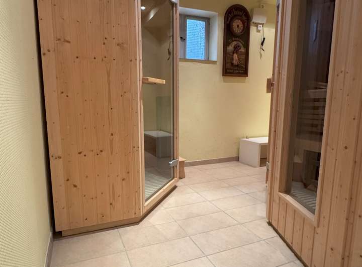 Im Keller wartet auf Sie der Wellnessbereich, mit Pool, Sauna und Wärmekabine.