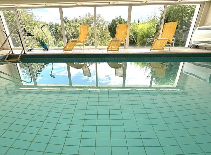 Der Innenpool mit energiesparender Technik und Isolierung , ist pflegeleicht und technisch auf dem aktuellen Stand. Dieser Bereich ist mit einer zusätzlichen Duschmöglichkeit ausgestattet.