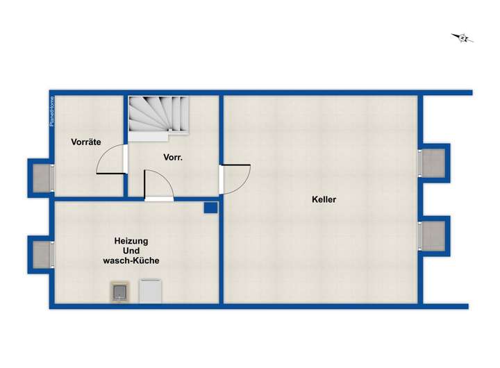 Im Keller befinden sich der Heizraum mit „neu“ eingebauter Gasheizung (ca. 7/2020) von einer ortsansässigen Heizungsfirma sowie ein Raum mit den Hausanschlüssen und ein sehr großer Kellerraum (Hobbyraum oder z. B. Sauna möglich mit Ruhemöglichkeit etc.).