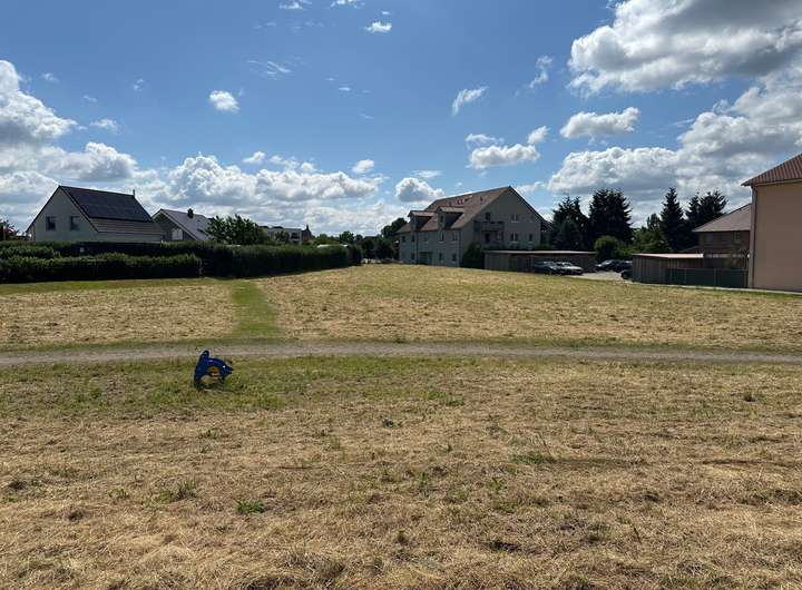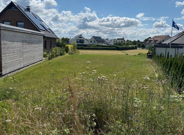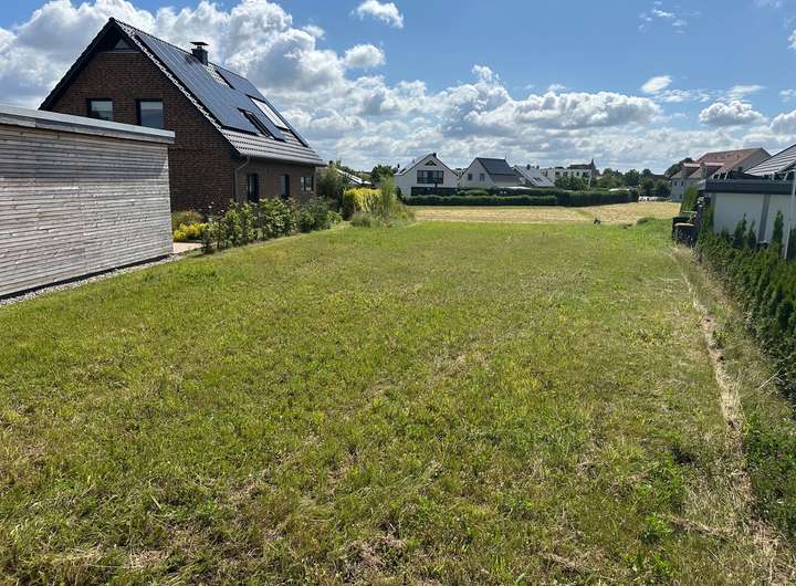 Die Straßen und Zuwegungen sind bereits hergestellt. Aktuell ist das Grundstück als Rasenfläche gehalten, die regelmäßig gepflegt wird. Die Ver- und Entsorgungsleitungen liegen vor dem Grundstück.