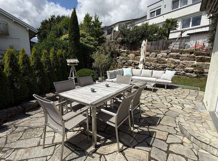 - Süd-West Terrasse mit Markise und Garten