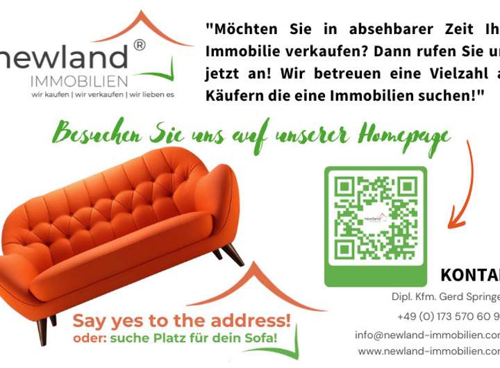 wir suchen Einfamilienhäuser, Doppelhaushälften, Mehrfamilienhäuser, Eigentumswohnungen, Gewerbe, Bauernhöfe, Villen und Grundstücke für unsere Kunden. Einfach-Sicher-Verkaufen/Kaufen! Kompetenz und individuelle Beratung sind sehr wichtige Bestandteile unserer Arbeitsphilosophie. Deshalb stehen wir unseren Kunden sehr gerne für eine umfassende und persönliche Beratung rund um die Immobilie zur Verfügung. Die Firma Newland Immobilien GmbH ist Mitglied im „IVD“ und ein Ausbildungsunternehmen und wurde in den letzten Jahren fünf Mal ausgezeichnet als Best Property Agents - von dem Immobilienmagazin Bellevue.