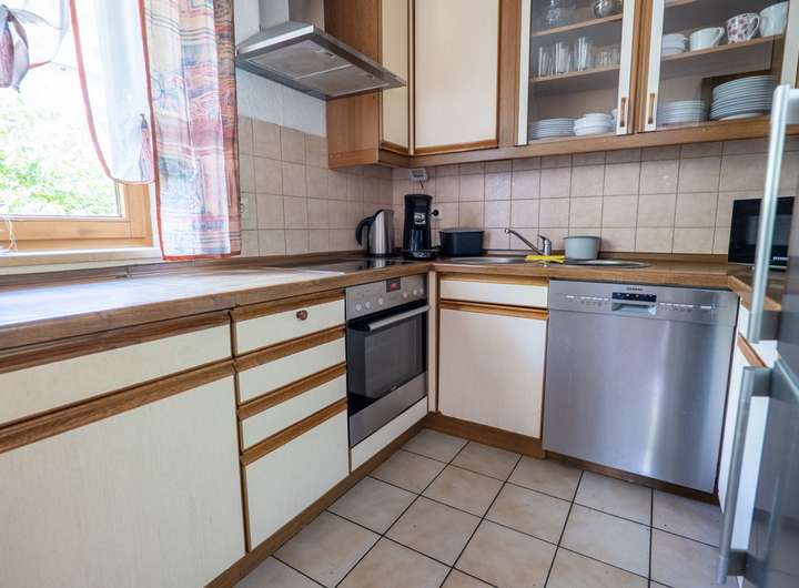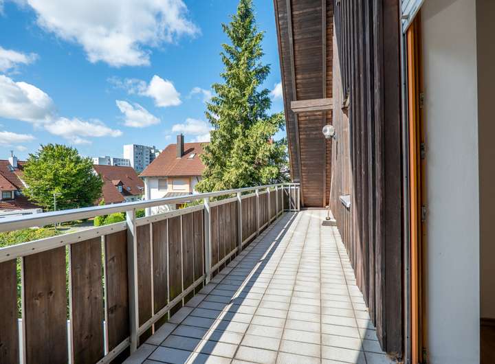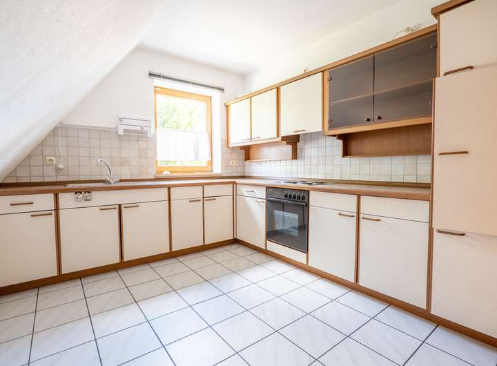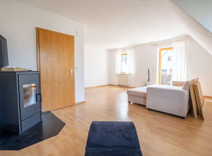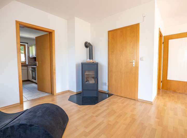 Im ersten Obergeschoss finden Sie eine 2 Zimmer Wohnung mit tollem Balkon , Einbauküche und Kaminofen.