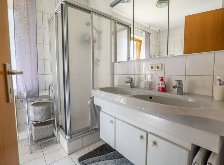 Ausgebaut ist weiter der Raum über der Doppelgarage mit eigenem Badezimmer.
