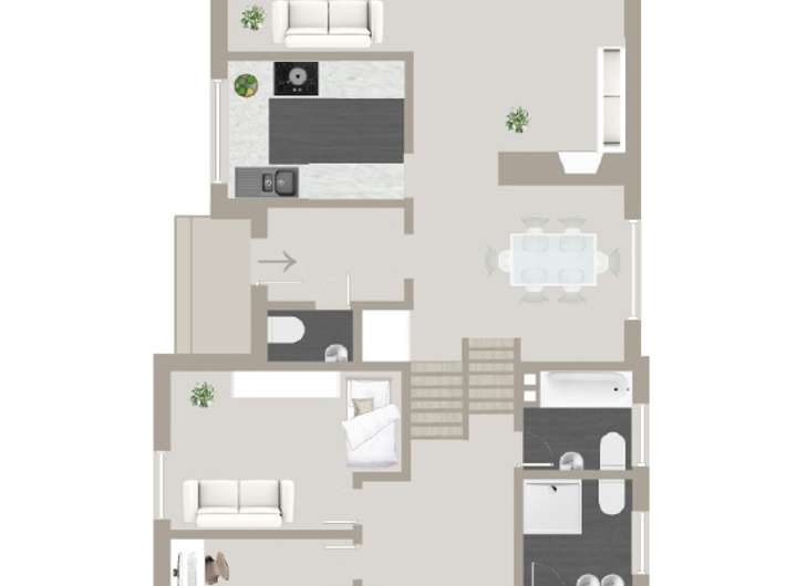 Die offenen Übergänge zwischen den Ebenen so auch zum Teilkeller schaffen ein Gefühl von Großzügigkeit und fließendem Raum.