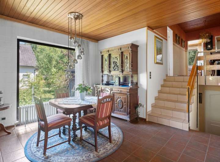 Dieses reizvolle Einfamilienhaus aus dem Jahr 1972 vereint solide Bauqualität mit einem besonderen Raumkonzept. Ursprünglich mit Flachdach errichtet, erhielt das Haus 1997 ein neues, klassisches Satteldach – ein architektonisches und energetisches Upgrade, das dem Gebäude zusätzlich Aufwertung verleiht. Die massive Bauweise sorgt für ein angenehmes Raumklima und Langlebigkeit. Beheizt wird diese attraktive Immobilie mit einer Ölzentralheizung aus dem Jahr 2005 über Fußbodenheizung und Heizkörper. Der Warmwasserspeicher wurde 2024 erneuert und der Brenner ist aus diesem Jahr. Der Außentank fasst 7.000 Liter.