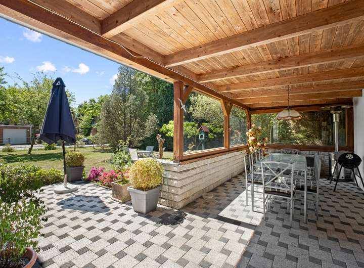 Der Teilkeller bietet zwei helle Kellerräume für Hobby und Abstellfläche. Im Technikraum befinden sich die Ölheizung und die Anschlüsse für Waschmaschine und Trockner. Ihr Auto parken Sie bequem in der integrierten Garage mit elektrischem Rolltor und gelangen immer trockenen Fußes in Ihr Zuhause.