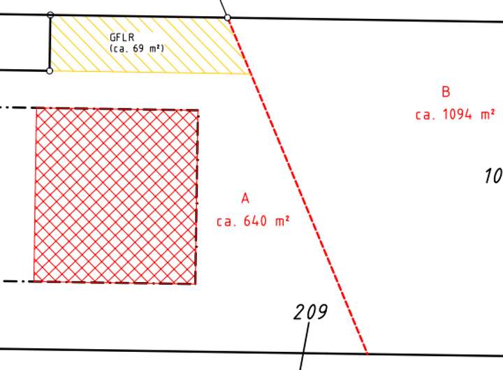 Die Fläche der Stichstraße von 69 qm ist für die Erschließung der Wiese zu parzellieren.