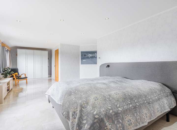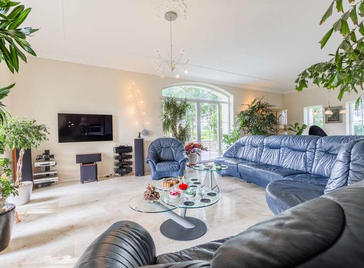 Die Ausstattung setzt Maßstäbe: Eine elegante Einbauküche, edle Marmorböden im Wohn- und Empfangsbereich sowie Granitböden im Hauswirtschaftsraum unterstreichen den exklusiven Charakter. Eine massive Mahagonitreppe verbindet die Etagen auf stilvolle Weise.