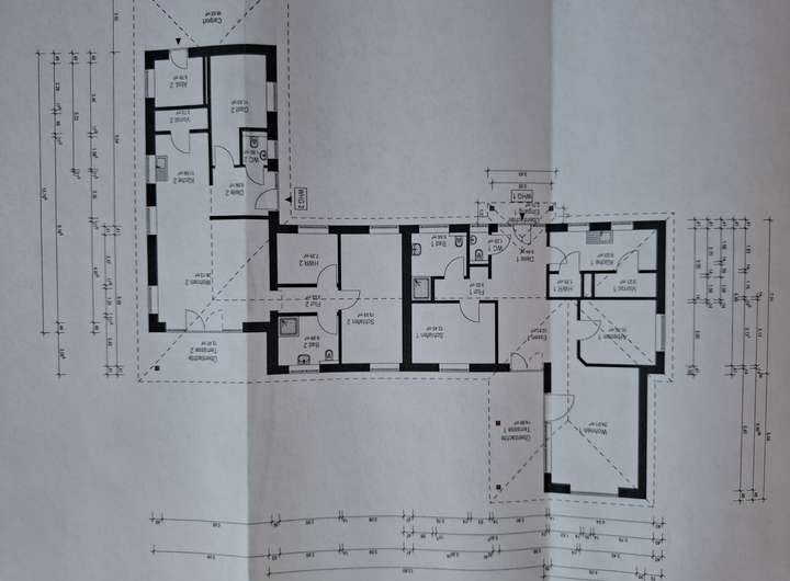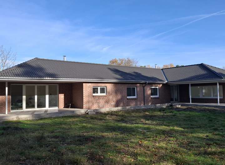 Im Zuge der Umbau- und Sanierungsmaßnahmen wurde die Bestandsimmobilie aufgrund der Grundstücksgröße um einen Anbau Richtung Westen und Norden (zur Straße hin) erweitert, so dass das Gesamtobjekt nunmehr aus zwei komplett eigenständigen / autarken Haushäften im Bungalowstil besteht.