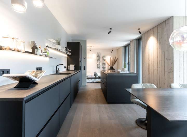 Die gut ausgestattete Küche mit Insel und Geräten von Bosch ist der ideale Ort zum Kochen und bildet das Herzstück jeder Wohnung.