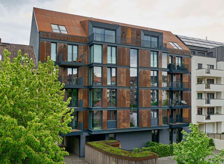 Luxuriöses und nachhaltiges Wohnen sind im Neubau vereint, der sich durch seinen progressiv urbanen Look und moderne Materialien auszeichnet.
