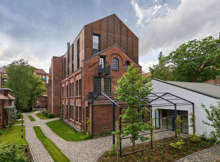 Durch die Reduktion von Materialien und Farben wird eine spannungsvolle Balance zwischen historischem Charme und moderner Architektur erreicht. Beeindruckende Stilelemente wie historisch erhaltene Backsteinwände, Glas-Lofttüren und hochwertige Böden machen jedes Loft zu einem besonderen Zuhause. Das Gebäude ist im Hinblick auf die Energieeffizienz auf dem neuesten Stand und erreicht die KFW 100 Norm.