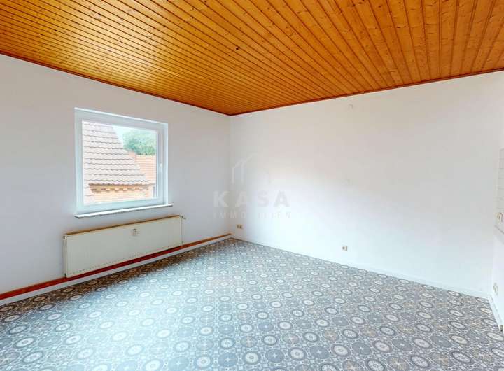 Das Obergeschoss erreichen Sie über das Treppenhaus. Es verfügt über eine Oberwohnung mit ca. 85 qm, die sich wie folgt aufteilt: Flurbereich, Küche, drei Schlafzimmer, Wohnzimmer, Hauswirtschaftsraum und ein Badezimmer mit Dusche.