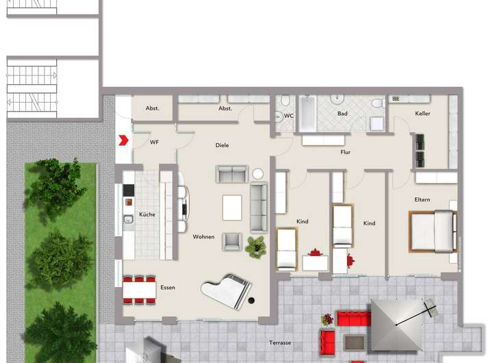 Herzlich Willkommen in einer großzügigen Terrassenwohnung mit Blick ins Naturschutzgebiet. Die individuelle Architektur bietet Ihnen durch den separaten Außenzugang Privatsphäre und den Komfort einer Eigentumswohnung zugleich.