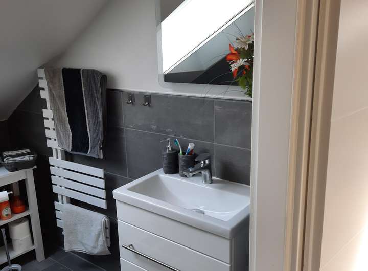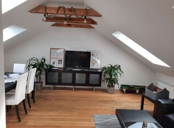 Das Dachgeschoss ist auf ca 65 qm vollständig ausgebaut und bietet ebenfalls ein vollständiges Duschbad.