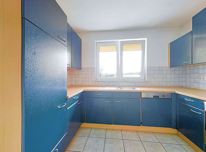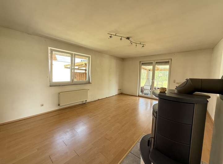 Der offene Wohn- und Essbereich bildet das Herzstück des Hauses. Große Fensterflächen sorgen hier für viel Tageslicht und einen schönen Blick in den Garten. Die Küche ist praktisch gelegen und bietet direkten Zugang zum Wohnbereich.