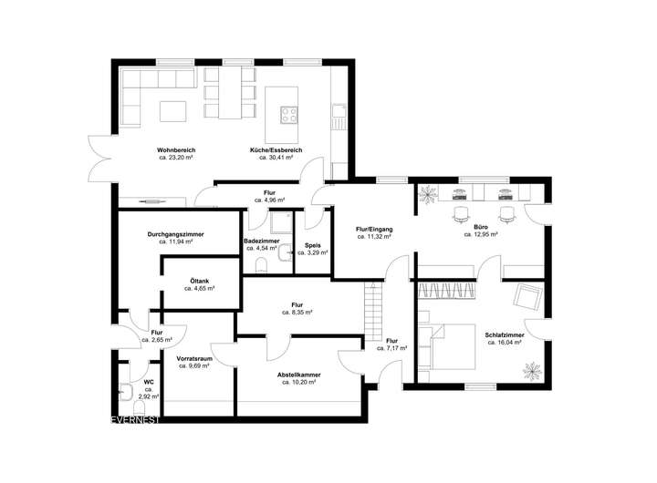 Das großzügig geschnittene Einfamilienhaus bietet mit ca. 183 m² Wohnfläche viel Platz zum Leben, Arbeiten und Entspannen. Zusätzlich stehen rund 63 m² Ausbaureserve bereit – ideal, um individuelle Wohnträume wahr werden zu lassen.