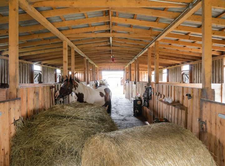 Für Pferdeliebhaber bietet es nahezu perfekte Bedingungen: Ein großzügiger Offenstall, zehn komfortable Boxen, ein Reitplatz sowie ein Roundpen lassen keine Wünsche offen. Die weitläufigen Weiden, die stille Umgebung und herrliche Ausreitmöglichkeiten direkt ab Hof machen jeden Tag zu einem Erlebnis. Dies ist für Reitbeteiligungen und Einstellerpferde sehr beliebt – ein echtes Plus für Pferdefreunde.