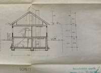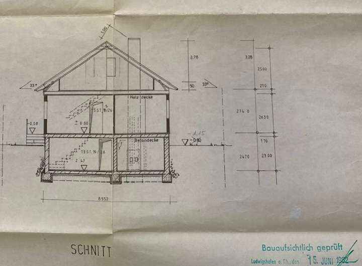 Das aktuelle Einfamilienhaus ist ein Fertighaus. Es hat die Maße 8m x 10m und steht auf einem massiven Stahlbetonkeller. Das Einfamilienhaus selbst hat einen Brandschaden und muss vom Käufer zurück gebaut werden.