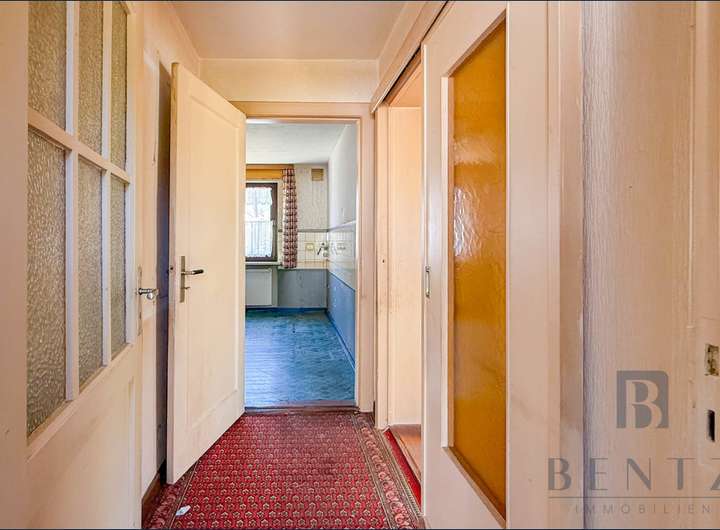 Das Bestandsgebäude befindet sich in einem altersbedingten Zustand und eignet sich eher für einen Rückbau. Dadurch entsteht Raum für einen Neubau ganz nach Ihren Vorstellungen. Das Grundstück liegt teilweise im Innenbereich gemäß § 34 BauGB. Eine Neubebauung ist daher zulässig, sofern sie sich in die umliegende Bebauung einfügt. In der Nachbarschaft dominieren Einfamilienhäuser im vorderen Teil des Grundstücks mit 1–2 Geschossen in offener Bauweise – super Voraussetzungen für Ihren Traum vom Eigenheim. Ihr individuelles Bauvorhaben kann nur durch eine Bauvoranfrage beim Bauamt geprüft und genehmigt werden.