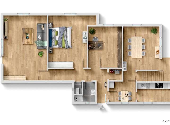 Der Teilkeller und die Garage (beides feucht), eine Werkstatt, ein Geräteraum und diverse Abstellräume bieten ausreichend Staufläche. Der ans Wohnzimmer angrenzende Partyraum lädt zu gemütlichen Stunden ein.
