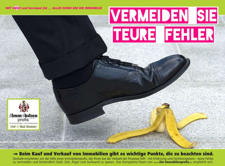Wir - DIE IMMOBILIENPROFIS - stehen Ihnen nunmehr bereits seit 1991 für "Alles rund um die Immobilie" kompetent mit Rat und Tat zur Seite. Unser Team aus Architekten, Gutachtern, Sachverständigen, Energieberatern, Finanzierungsexperten, Hausverwaltern, Neubauberatern und Immobilienprofis ist jederzeit gerne für Sie da. Auch empfehlen wir Ihnen einen Besuch unserer Homepage www.die-immobilienprofis.de, auf welcher Sie über 200 ständig wechselnde Kauf-, Neubau- und Mietobjekte finden können, nützliche Tipps und Immobiliennews erhalten, sowie auch Hunderte Referenzen und Bewertungen unserer Kunden einsehen können. Hinweise: Wir behalten uns ausdrücklich vor, dass bei einer erhöhten Objektnachfrage und mehreren Kaufinteressenten wir in ein Angebotsverfahren übergehen. Die in unseren Objektangeboten enthaltenen Angaben basieren auf uns erteilten Informationen der Verkäufer. Wir sind bemüht, über Objekte und Vertragspartner möglichst vollständige und richtige Angaben zu erhalten. Eine Haftung für deren Richtigkeit und Vollständigkeit können wir aber nicht übernehmen. Die Immobilienprofis ...Ihre Immobilienmakler mit Herz in Hof und Bad Steben.