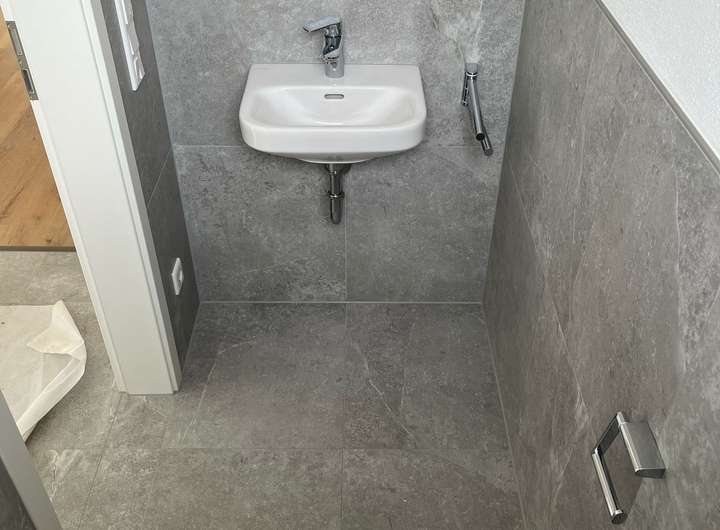 Im Erdgeschoss erwartet Sie ein offener, lichtdurchfluteter Wohn- und Essbereich mit direktem Zugang zur Terrasse und dem gepflegten Garten. Die offene Küche ist für den Einbau einer individuell gestaltbaren Küche vorbereitet, sodass Sie Ihre Wunschküche nach eigenen Vorstellungen umsetzen können. Ein modernes Gäste-WC rundet das Erdgeschoss ab.