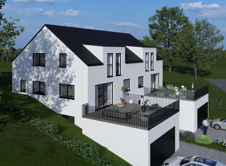 Laut Bebauungsplan ist hier die Errichtung eines Ein- oder Zweifamilienhauses sowie von zwei Doppelhaushälften möglich.