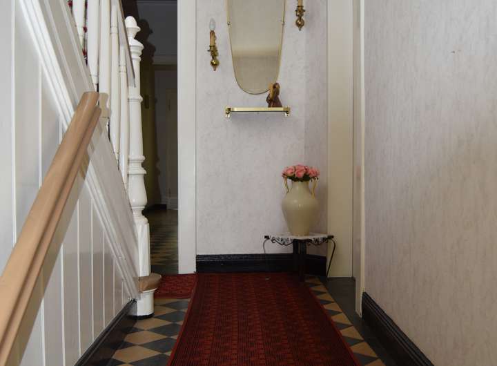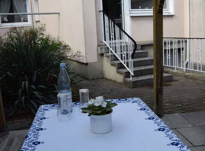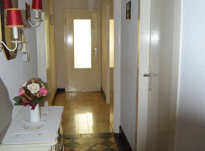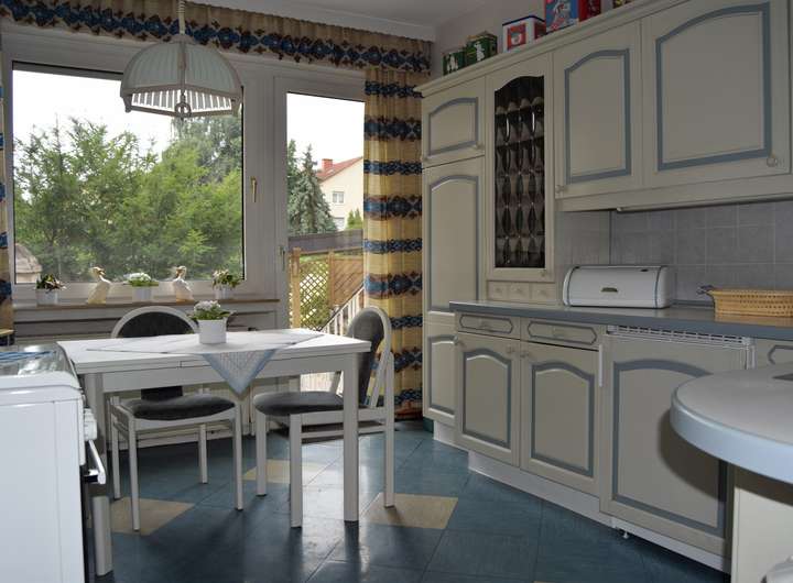 Durch den Hausflur, der noch die ursprünglichen Fliesen aufweist, gelangt man linker Hand direkt in den Keller und weiter über 5 Treppenstufen in das Erdgeschoss bzw. Hochparterre. Von hier aus ist über 2 Zugänge rechter Hand das aus 2 Zimmern bestehende Wohn- und Esszimmer erreichbar. Von einem kleineren Flur aus gelangen Sie des Weiteren in das mit hellen Fliesen und hellem Sanitär ausgestattete Tageslicht-Badezimmer. Folgendes Sanitär ist im Bad zu finden: bodennahe Duschtasse, WC und Waschbecken. Die am Ende des Flures erreichbare Küche ist mit einer hellen Einbauküche, die im Kaufpreis enthalten ist, ausgestattet und bietet ausreichend Platz für einen gemütlichen Esstisch. Von der Küche aus führt ein Ausgang in einen Hofbereich und weiter zu einer überdachten Terrasse sowie in den langen Gartenbereich.