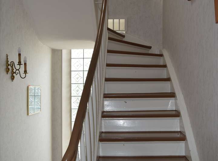 Über die großzügige Treppenanlage gelangen Sie in den oberen Flur, von dem aus Sie ein Schlafzimmer direkt und über einen kleinen, internen Flurbereich, ein weiteres Zimmer, ein Tageslicht-Gäste WC mit Waschbecken sowie ein bisher als Küche genutztes Zimmer mit einem sich anschließenden Südbalkon erreichen.