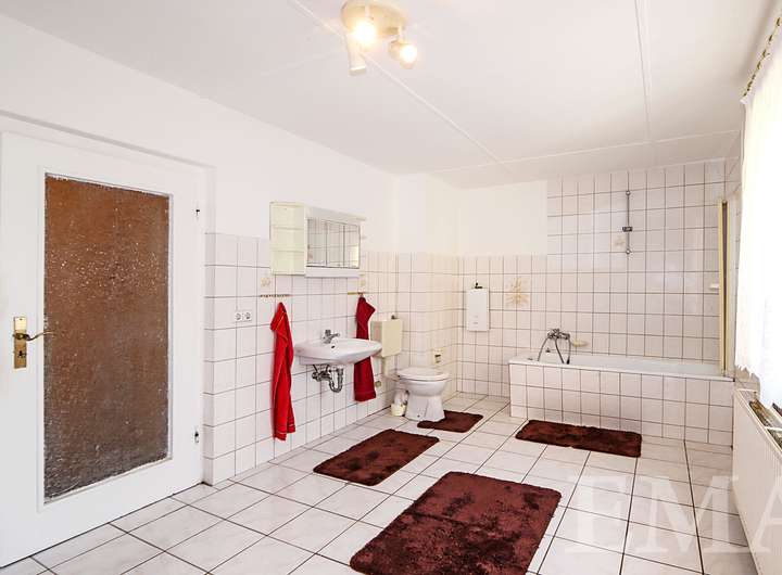 Auf dem großen Grundstück befindet sich ein Doppelgarage mit angeschlossener Werkstatt sowie ein weiteres massives Nebengelass. Durch einen separaten Außenzugang ist ein Abstellraum sowie ein WC erreichbar. Die Nutzfläche im Nebengelass beträgt ca. 54 m².